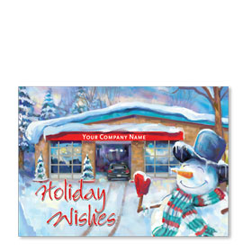 Double Personalized Full-Color Holiday Postcard - Snowman Welcome