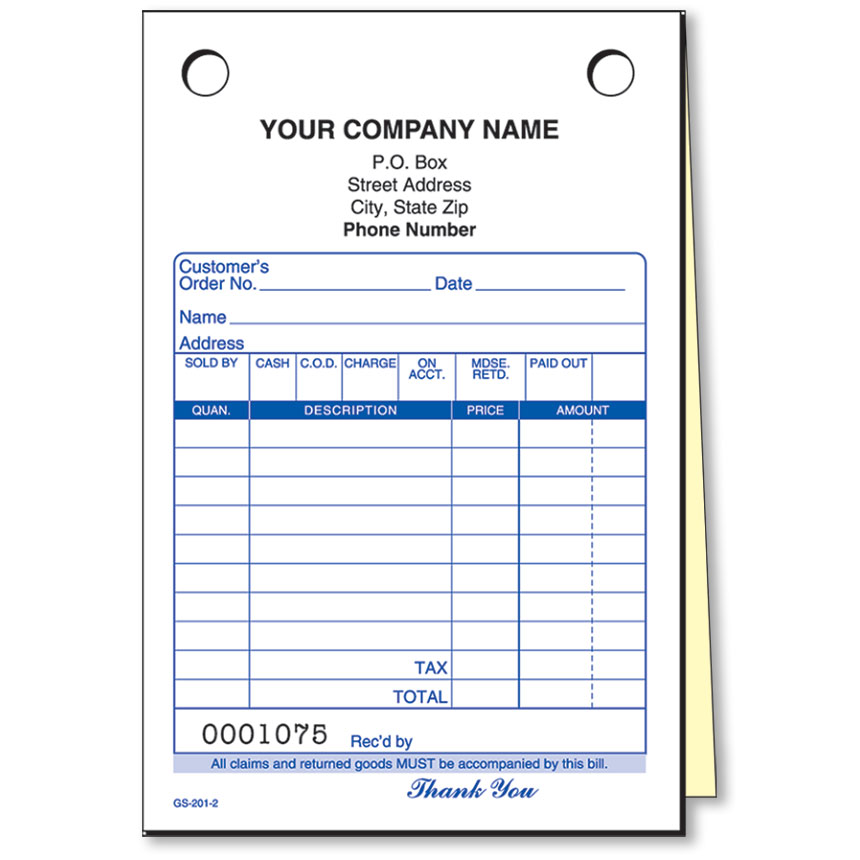 2-Part Auto Parts Sales Slip - Pack 250