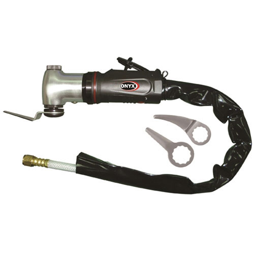 The Astro ONYX Windshield Sealant Cutter – WINDKO is a sealant cutter that oscillates 20,000 times per minute. It cuts around bonded and encapsulated glass. It efficiently cleans and smooths moldings after glass removal. It's teasing throttle and regulator provide easy speed control. You can position its flexible blade mount in twelve different ways at thirty-degree increments. The rear exhaust directs air away from work, and it also has a safety lever.