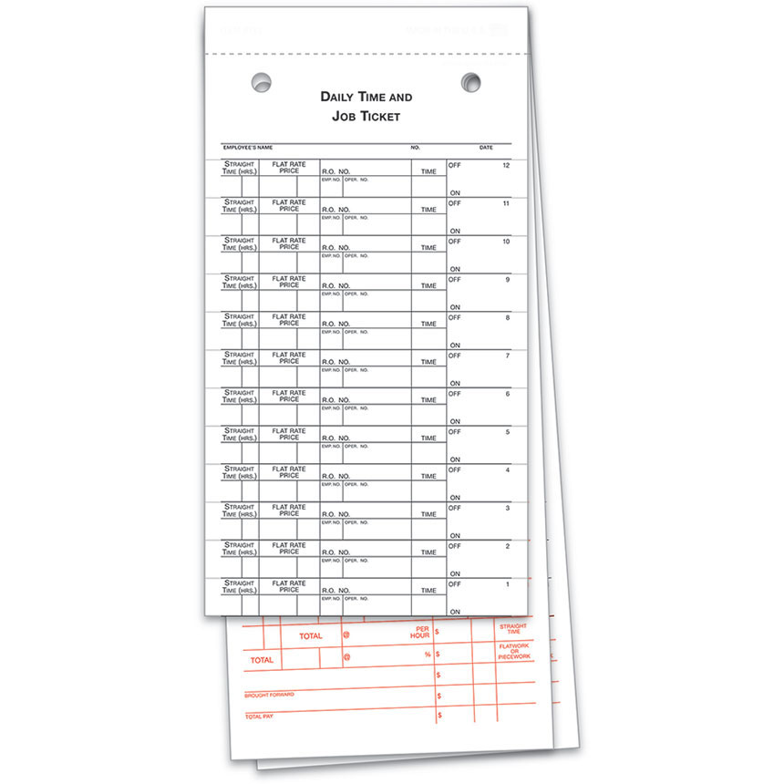 Keep a record of times and jobs with our 3 part, snap out, Carbonless Job Tickets! Parts 1 & 3 are printed in black ink, part 2 is printed in red ink. Peel & Stick labels are on part 1. Job Tickets are 4 ¼" x 9¾". 250 tickets per pack.