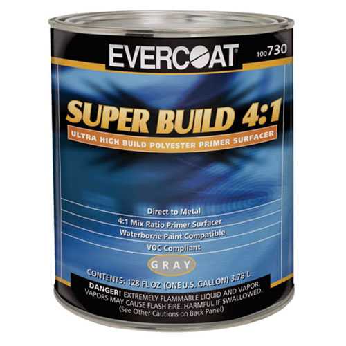 The Evercoat Super Build 4:1 is a high-build, two-component polyester primer surfacer with the patented 4:1 mix ratio technology. With exceptional filling capabilities, it helps you implement repairs on a host of substrates – rigid plastic, fiberglass, sheet molded composite, bare metal, e coat, aluminum, polyester filler and putties, and SMC. Apply it on properly sanded and cleaned bare metal.