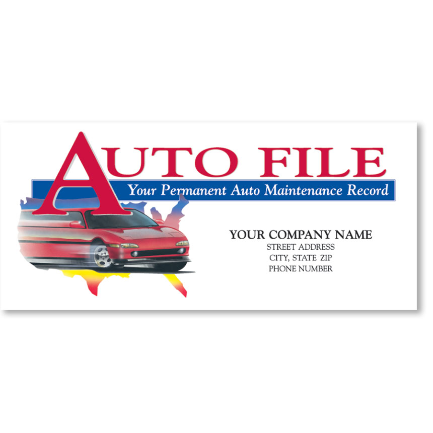 Auto files are slim enough to slide into a customer's glove compartment, but roomy enough to organize their important documents efficiently. Folders are personalized with your company imprint on the front cover. In addition, choose inside lower checklist option.