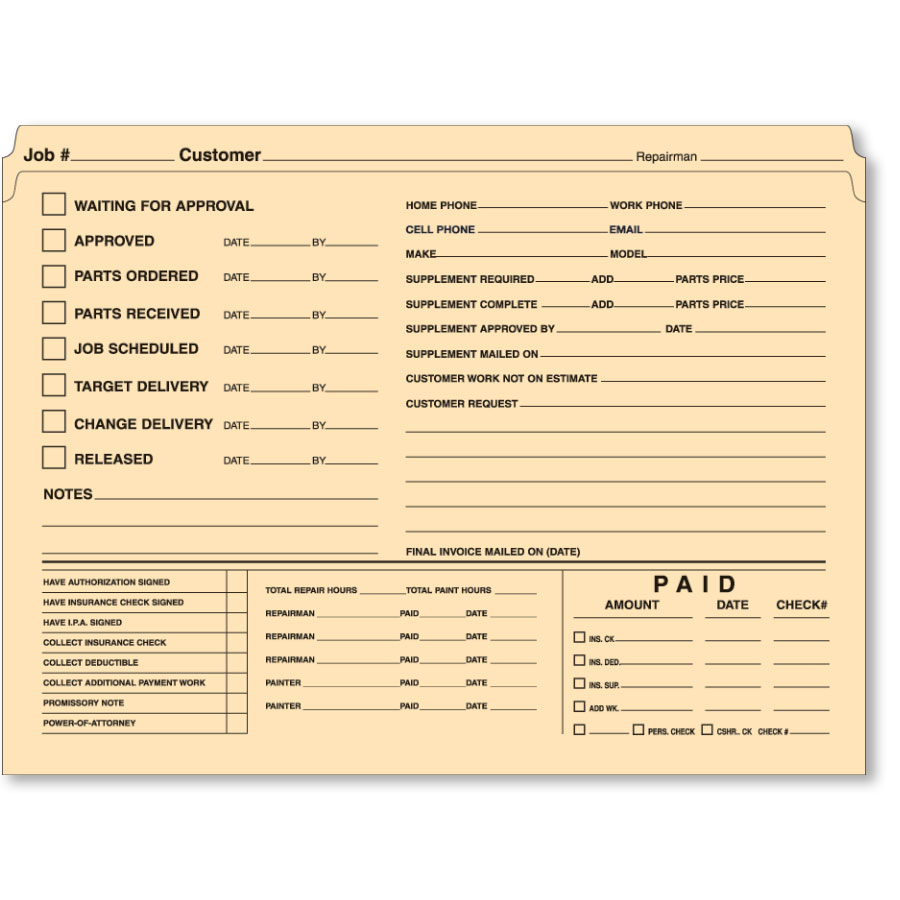 Manila Repair Order Folders - Version 1