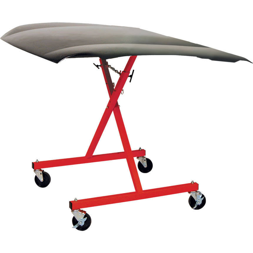 Rolling auto body stand makes transporting parts easy. Use in paint booth when parts are not tack-free.